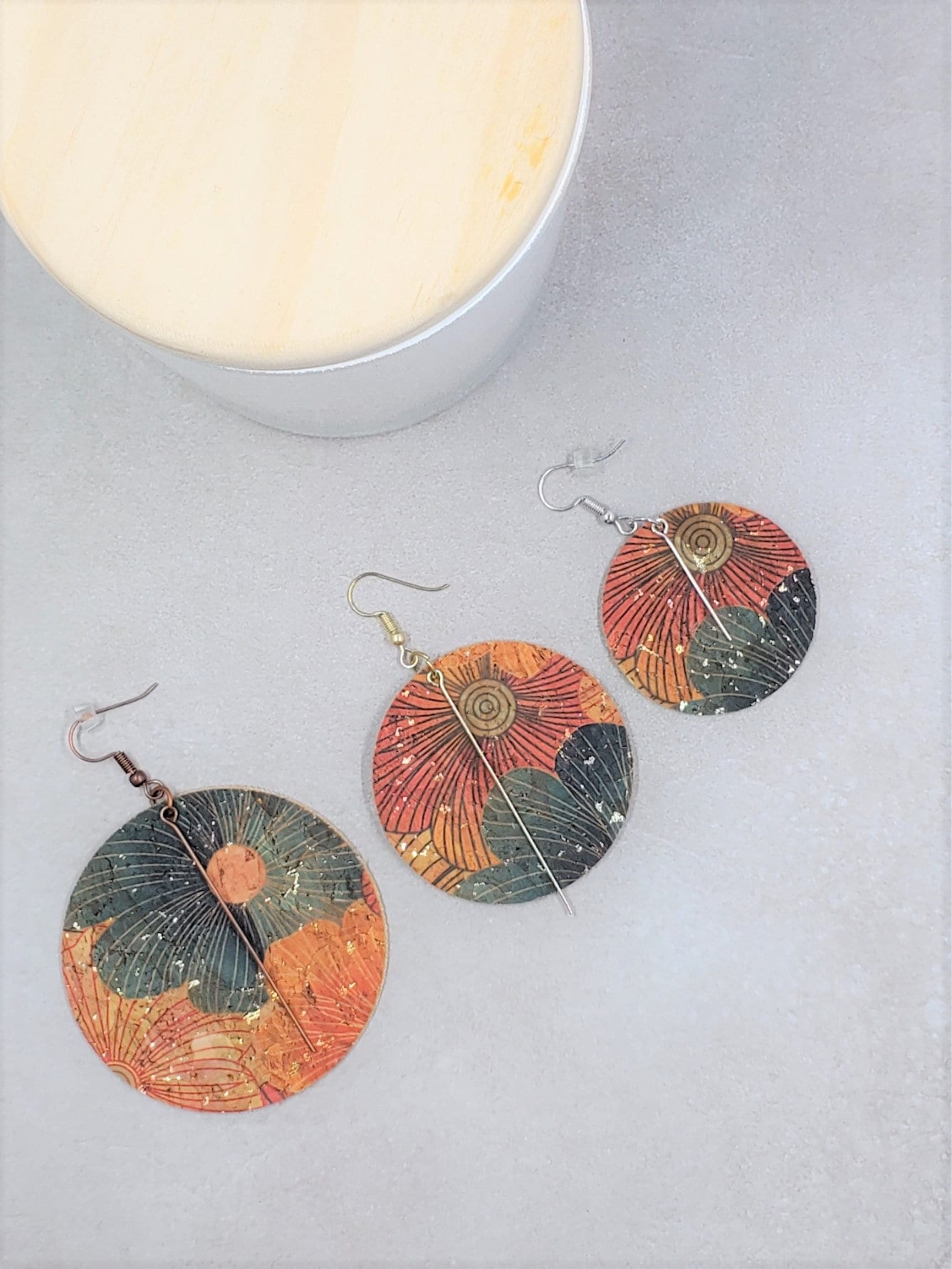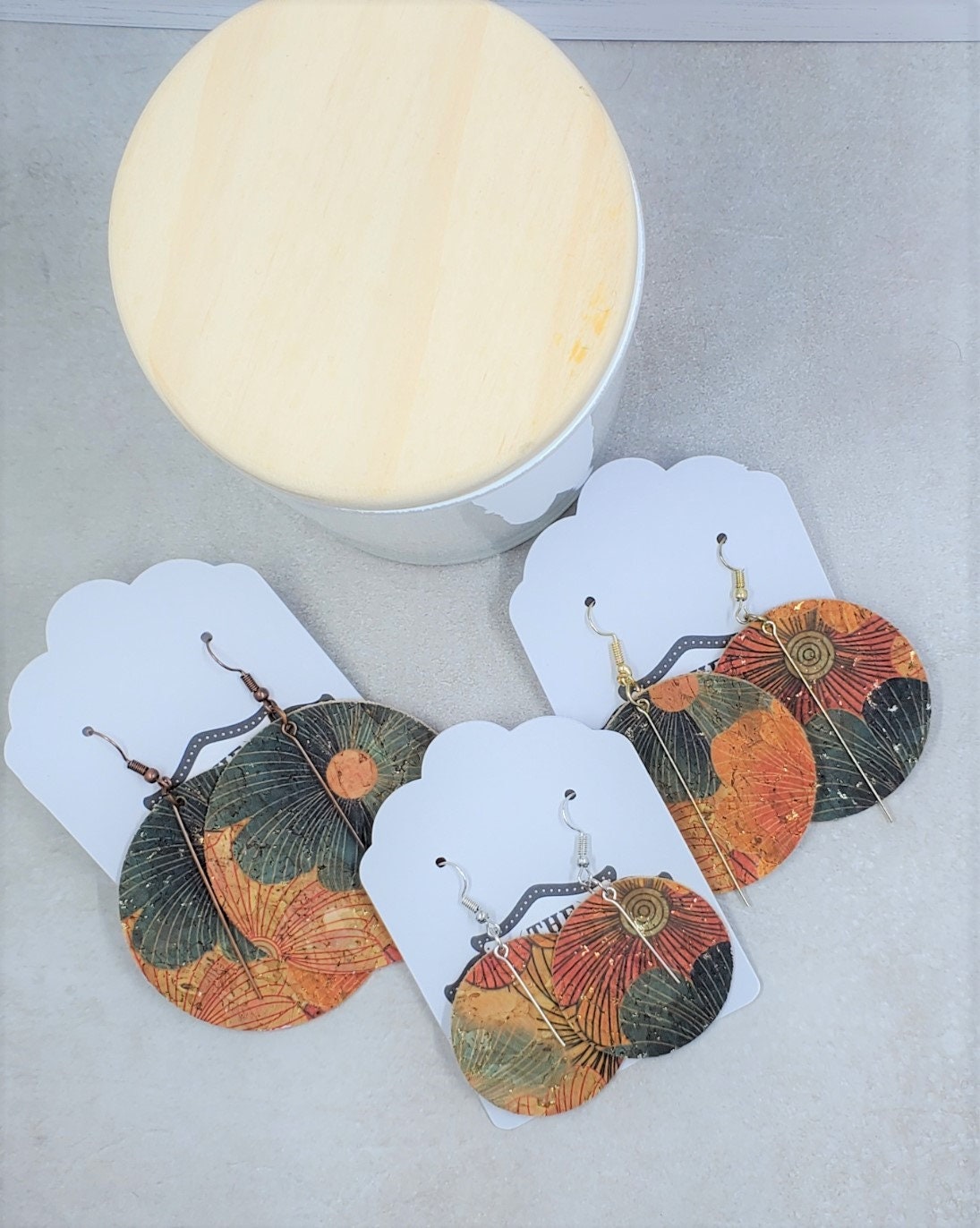 I love the color and textures in these and to make my earrings with a little more weight (tiny bit) than the one sided, so I make my earring with two sides OR multiple layers to all pairs. I love the look and feel of the lightweight leather and/or faux leather and/or cork earrings but I do like them to feel a little sturdier than feather weight. These are still SUPER lightweight, and they look fantastic.