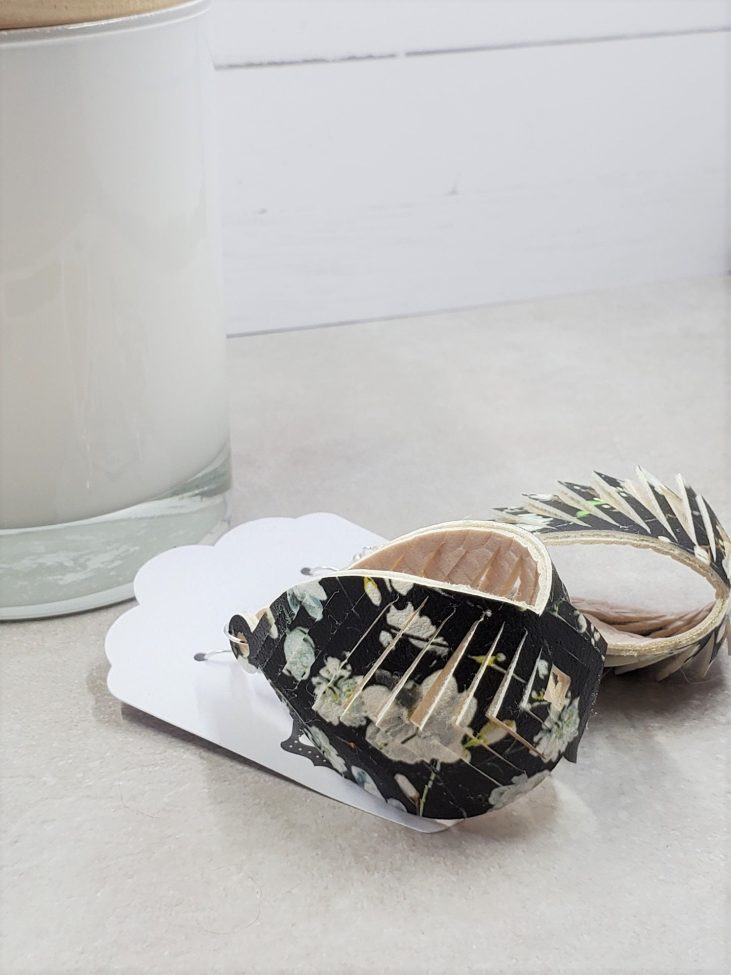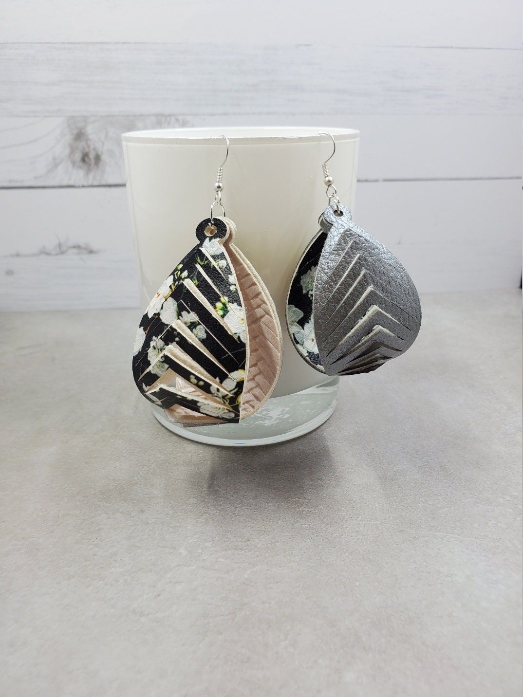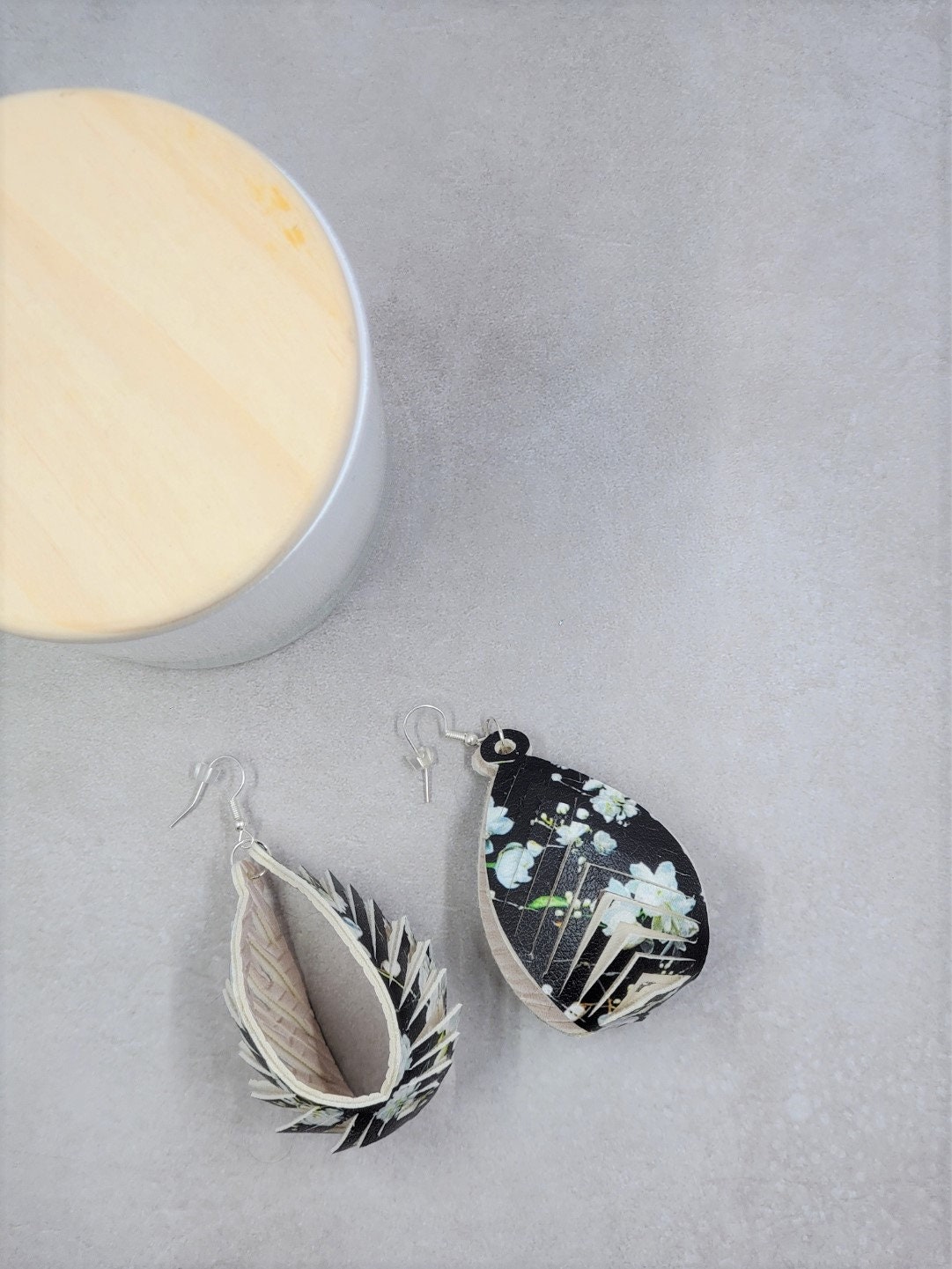 I love the natural look and texture of the faux leather. I like my earrings with a little more weight (tiny bit) than the one-sided, so I make my earring with two sides OR multiple layers to all pairs. I love the look and feel of the lightweight leather and/or faux leather and/or cork earrings but I do like them to feel a little sturdier than feather weight. These are still SUPER lightweight, and they look fantastic.