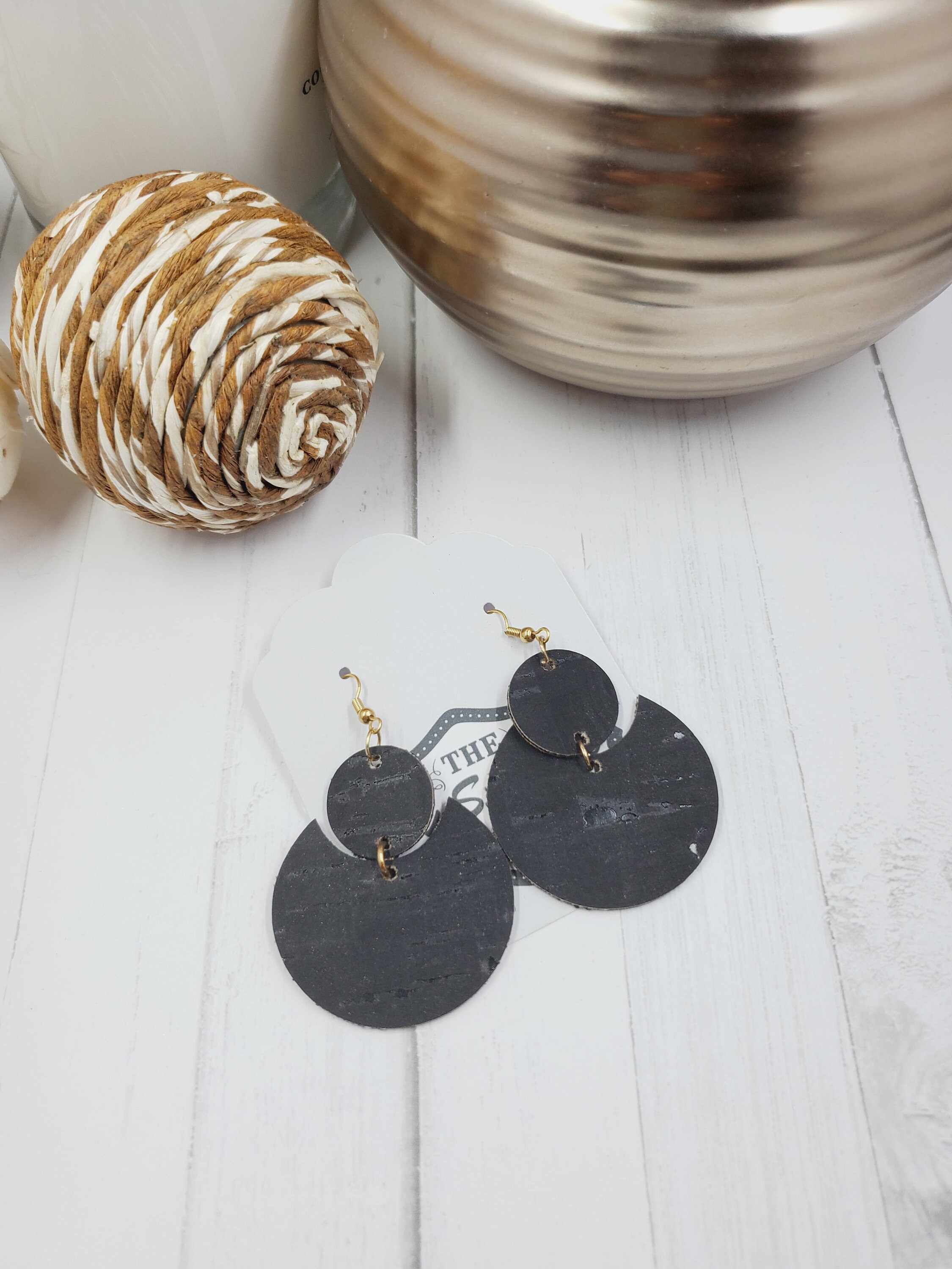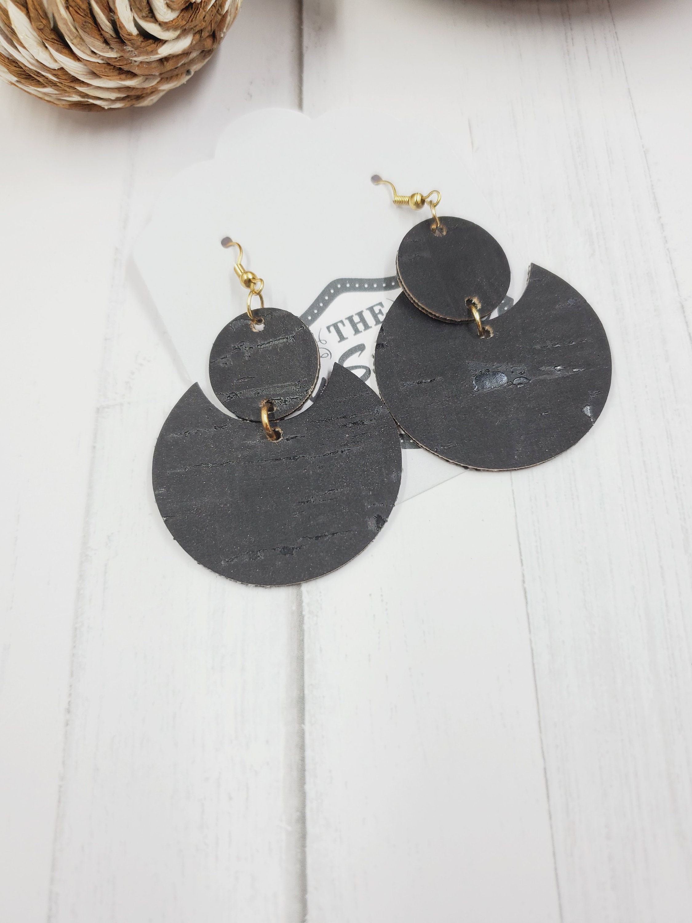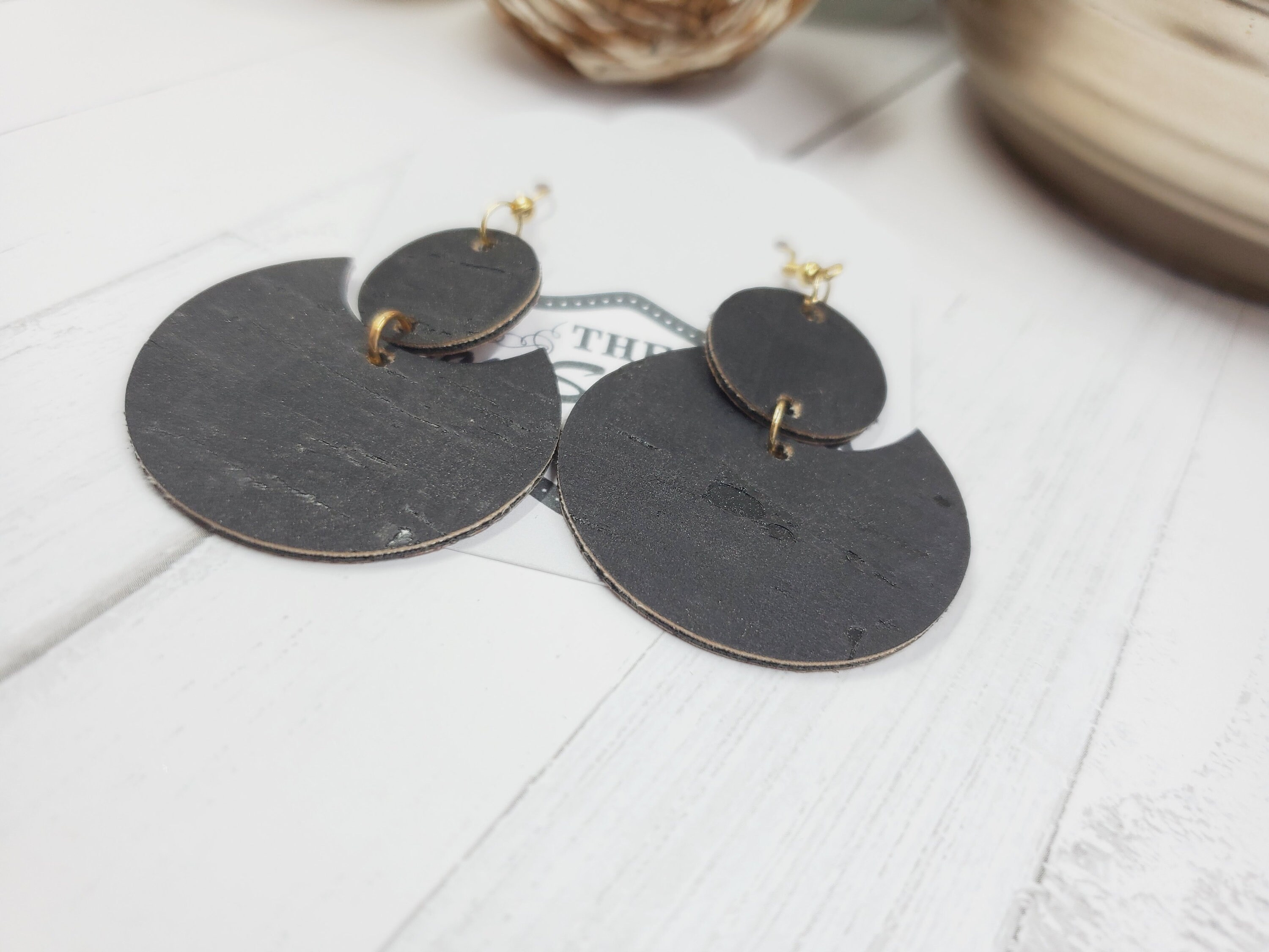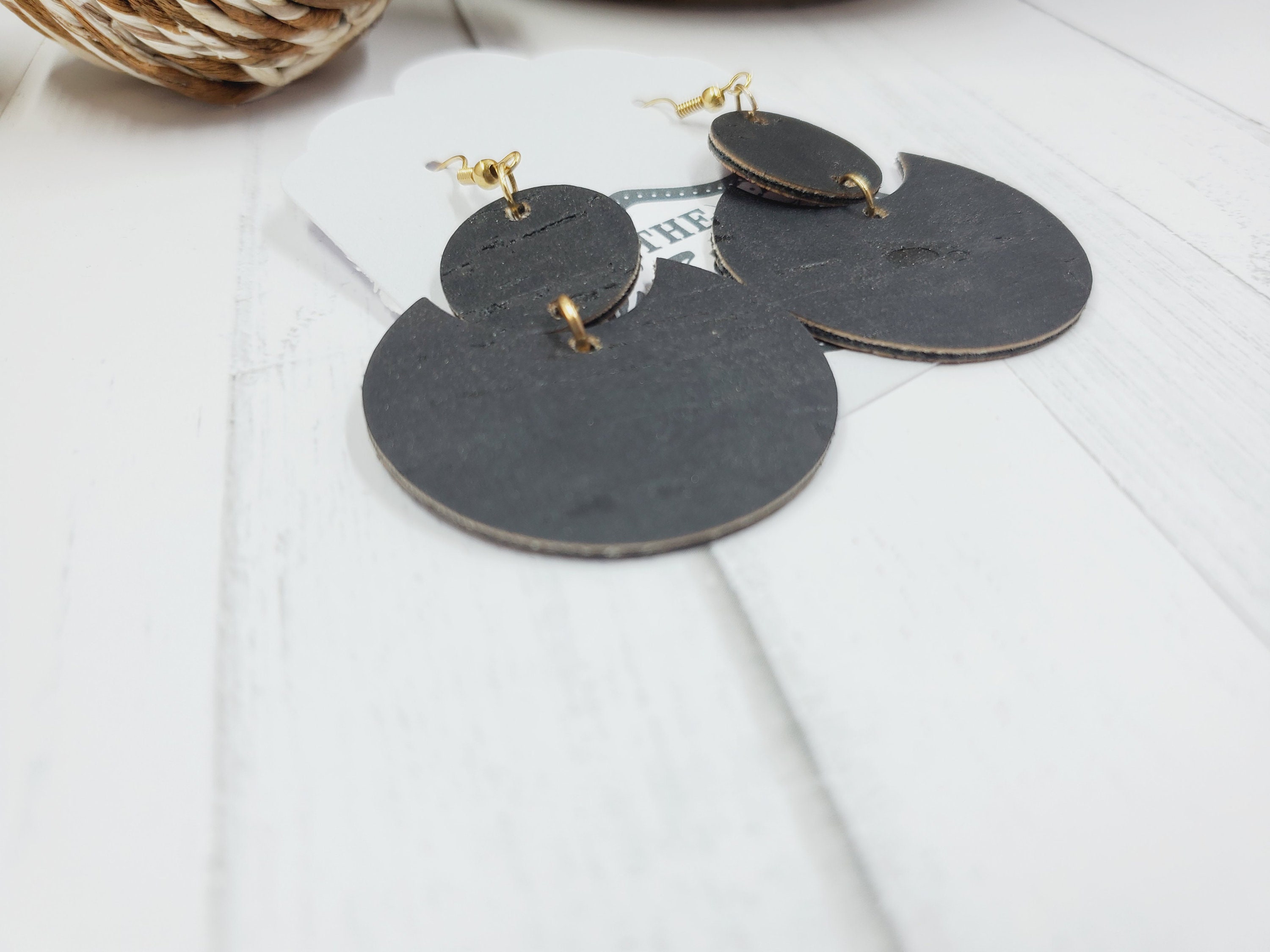 These earrings can be worn with either black or the maroon cork fabric showing making it like 2 earrings for price of one.